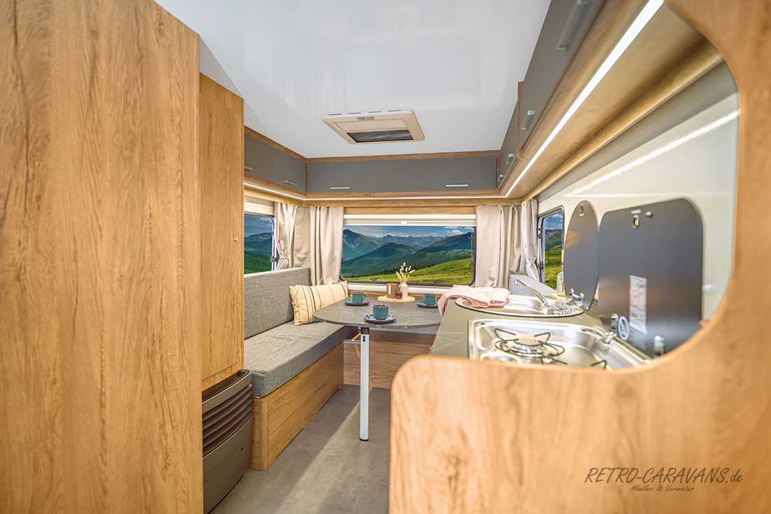 Hier bieten wir Ihnen den Niewiadow Lazur-4 Caravan in Sandwichbauform an welcher Ideal für Junge Familien mit 2 Erwachsene und 2Kinder ist. Der Lazur 4 bringt eine Menge Grundausstattung schon von Serie mit. Der Wohnwagen mit nur 950kg-1000KG zGG.